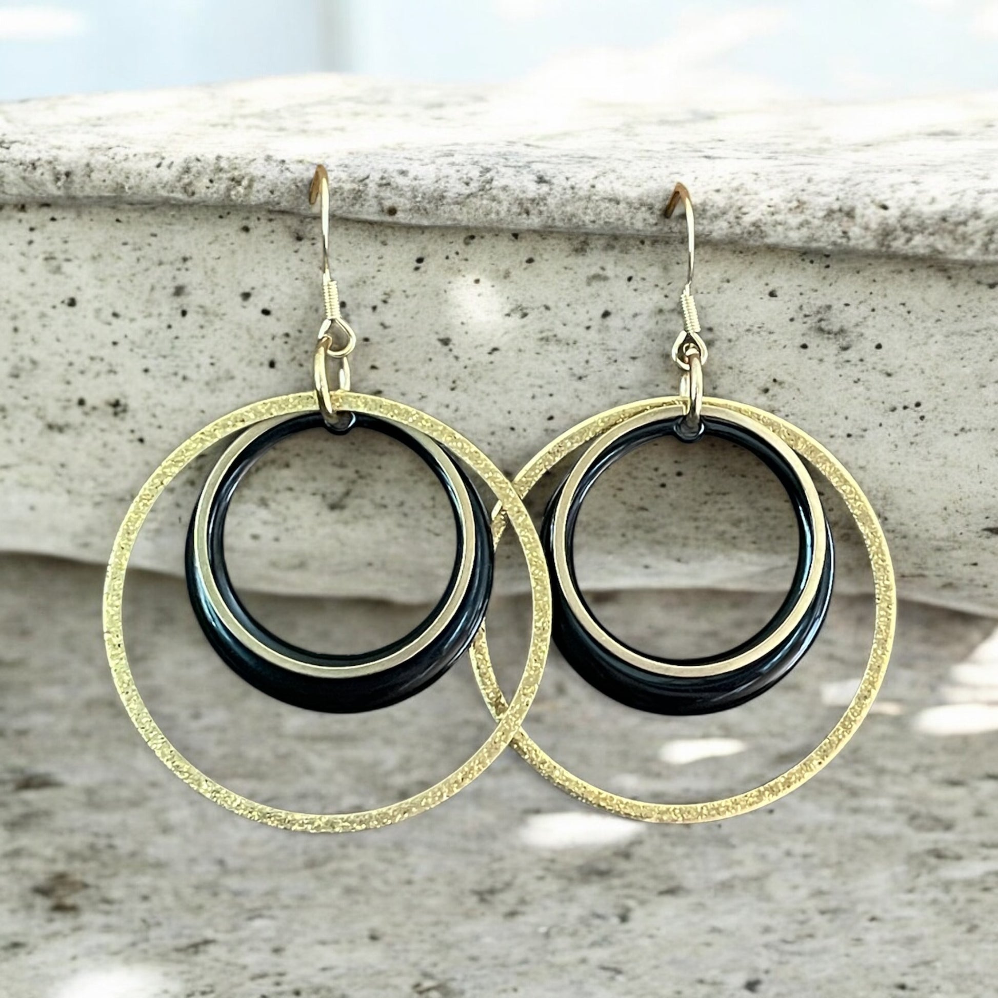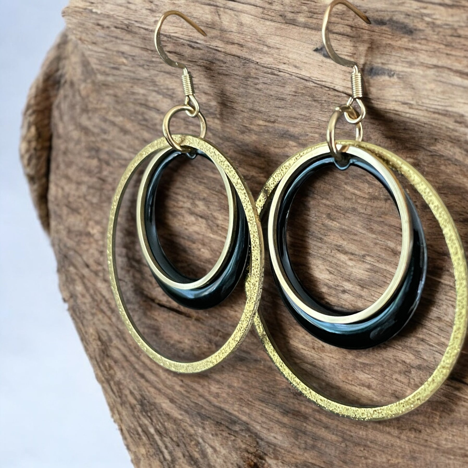 Faites vous plaisir avec ces boucles d'oreilles en anneaux faits d'acier inoxydable,laiton et sequins émaillés. Les attaches hypoallergéniques en acier inoxydable vous garantissent un confort optimal.