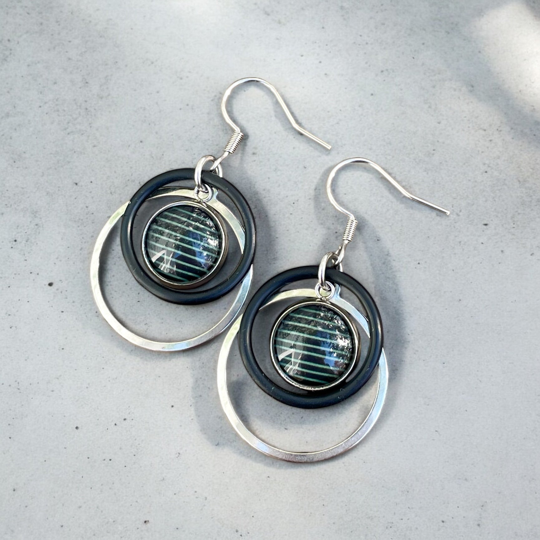 Découvrez ces boucles d'oreilles en acier inoxydable, avec des anneaux et des cabochons. D'une longueur de 4.5 cm et 2.5 cm de diamètre, leurs attaches hypoallergéniques vous permettront de les porter en toute confiance et sans irritation.