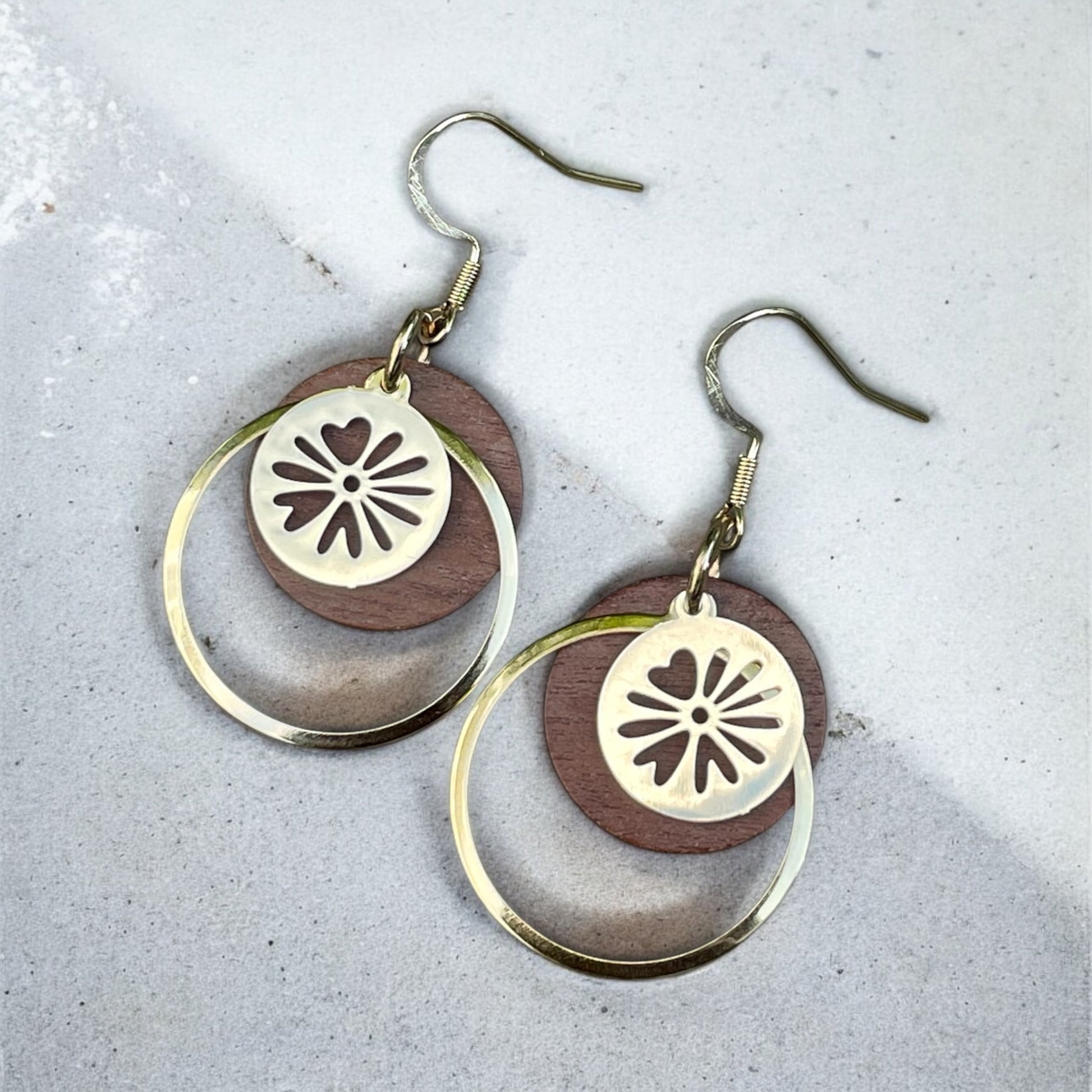 Les boucles d'oreilles pendantes en acier inoxydable et bois sont très légères et offrent une attache hypoallergénique en acier inoxydable.