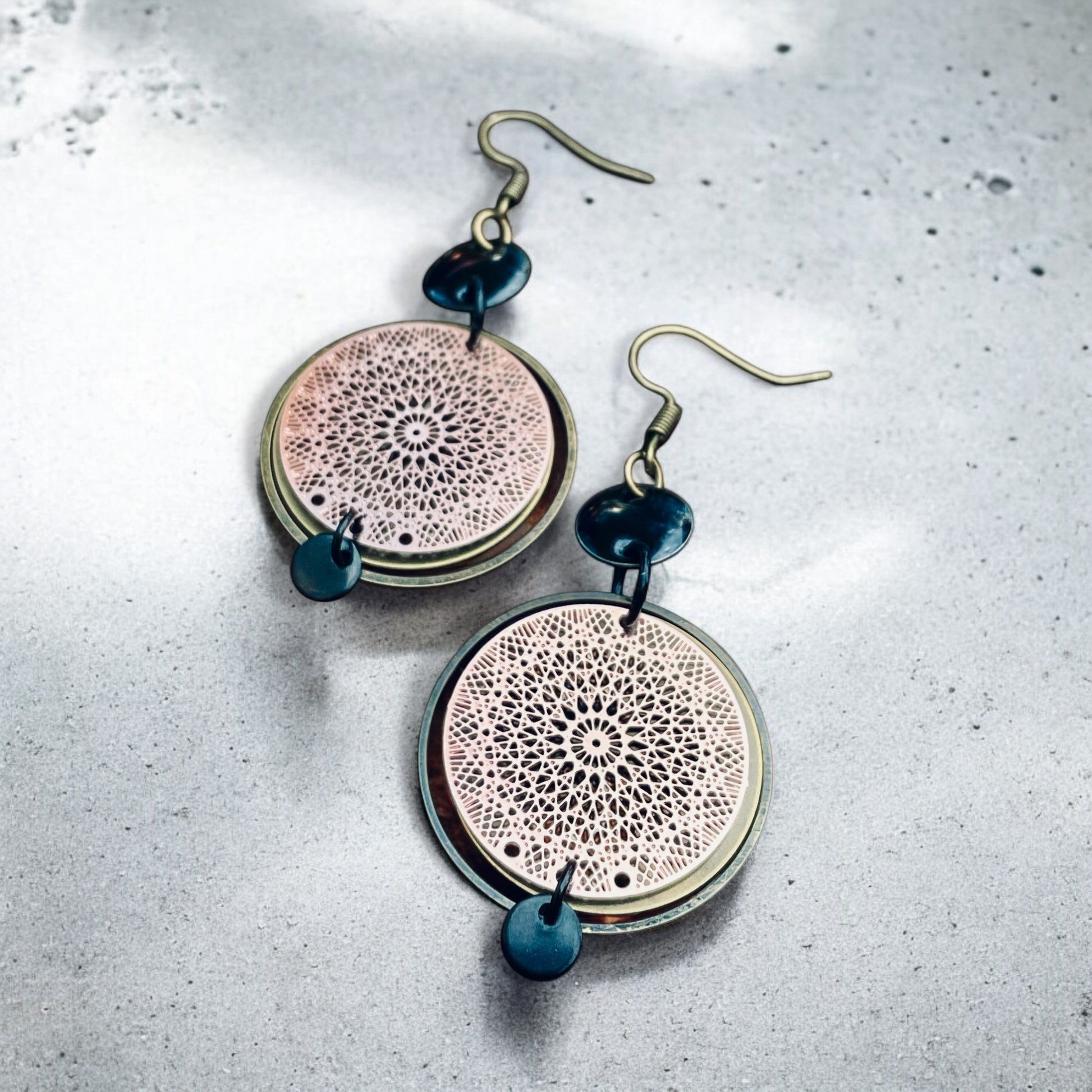 Transformez votre style avec ces boucles d'oreilles ! Composées d'acier inoxydable, de laiton et de sequins émaillés, ces boucles d'oreilles uniques ne font que 6 cm de long.