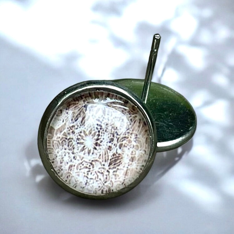 Boucles d'oreilles en acier inoxydable avec cabochons en verre de 12mm.