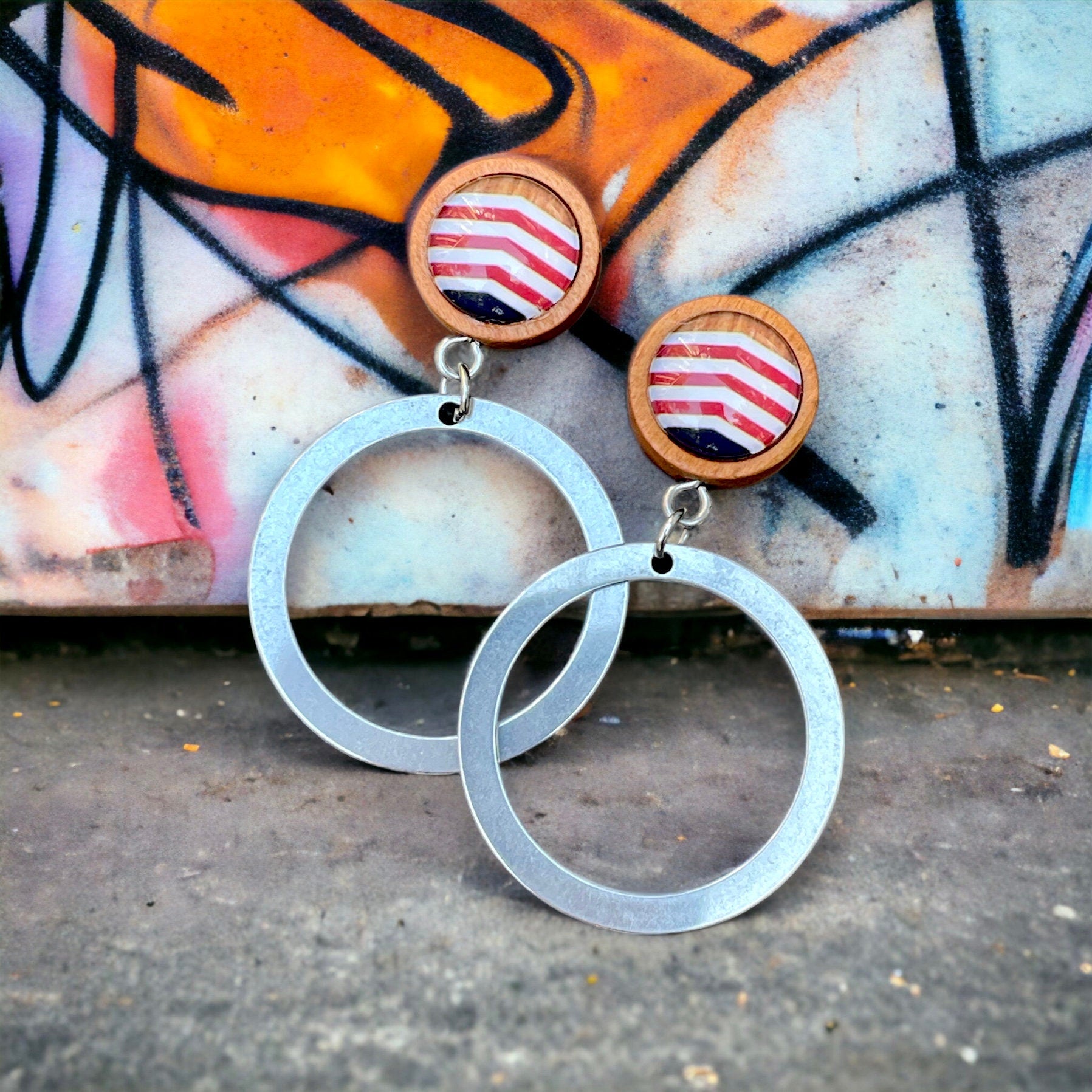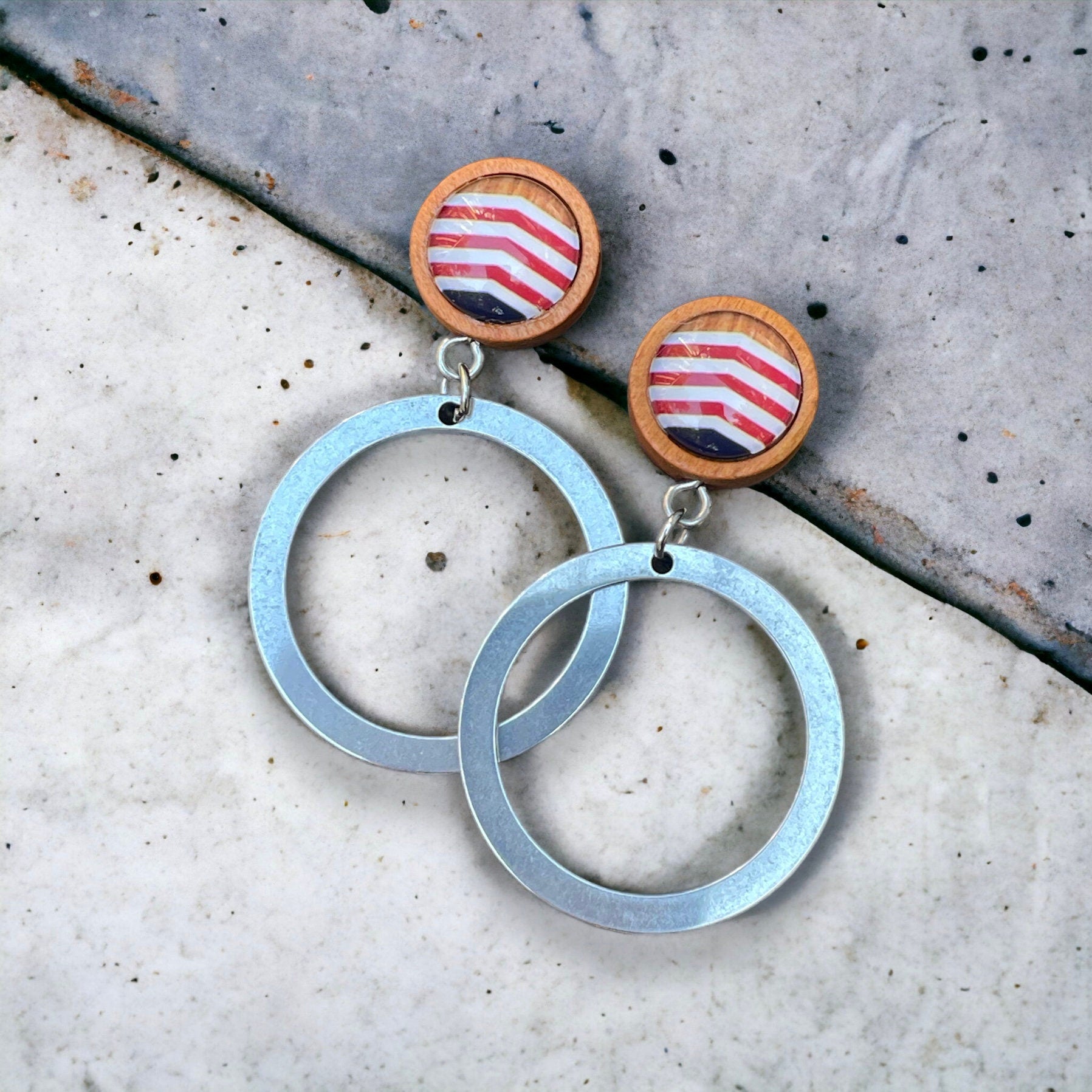 Transformez votre look avec ces magnifiques boucles d'oreilles conçues avec des anneaux en acier inoxydable et des cabochons de verre sur des bases en bois.