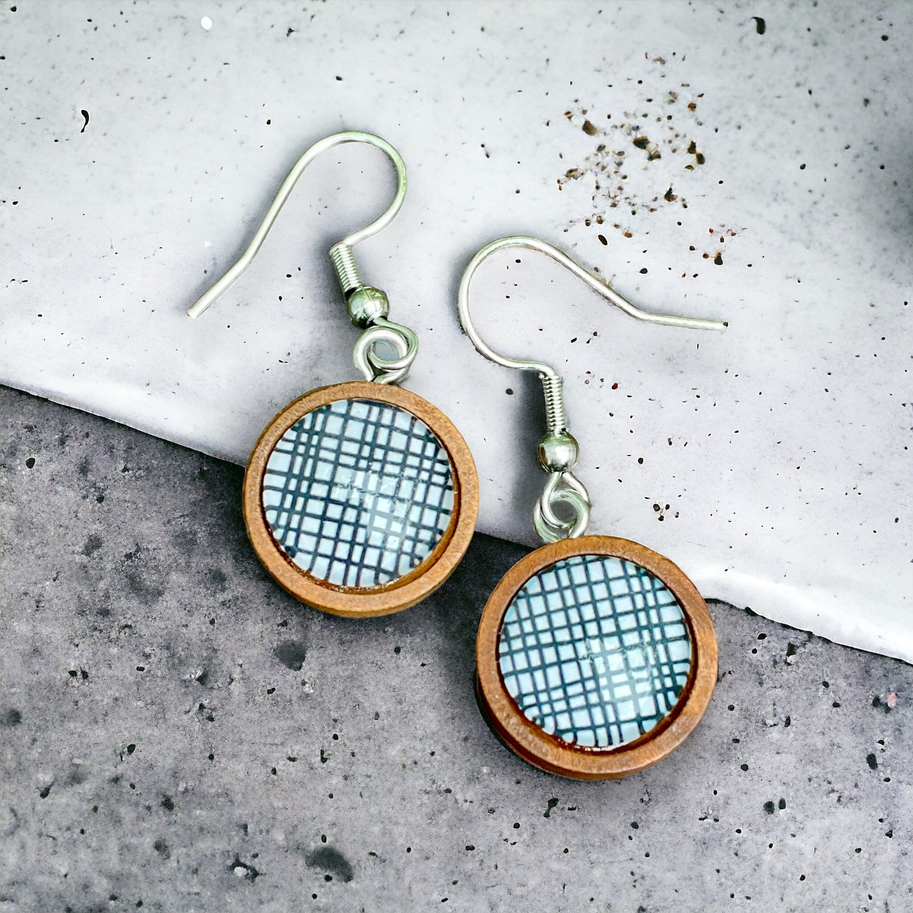 Offrez-vous un style unique avec ces boucles d'oreilles en acier inoxydable hypoallergénique, rehaussées de cabochons de verre sur bases de bois.