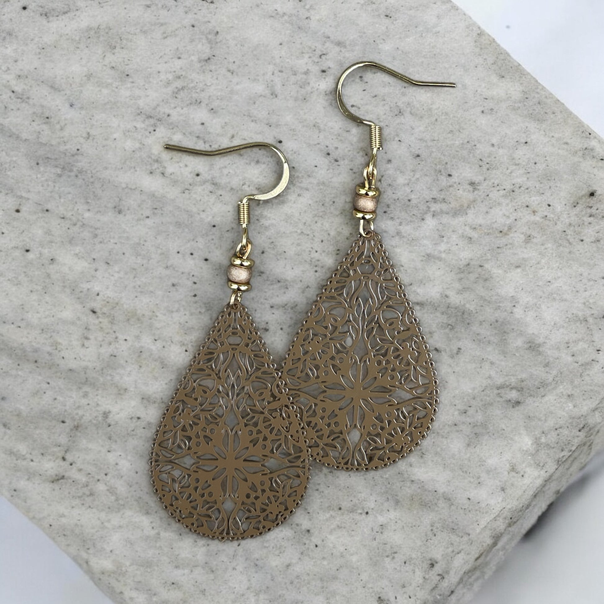 Ces boucles d'oreilles en laiton sont ornées de perles de verre et d’acier inoxydable. Elles sont extrêmement légères pour un confort optimal!