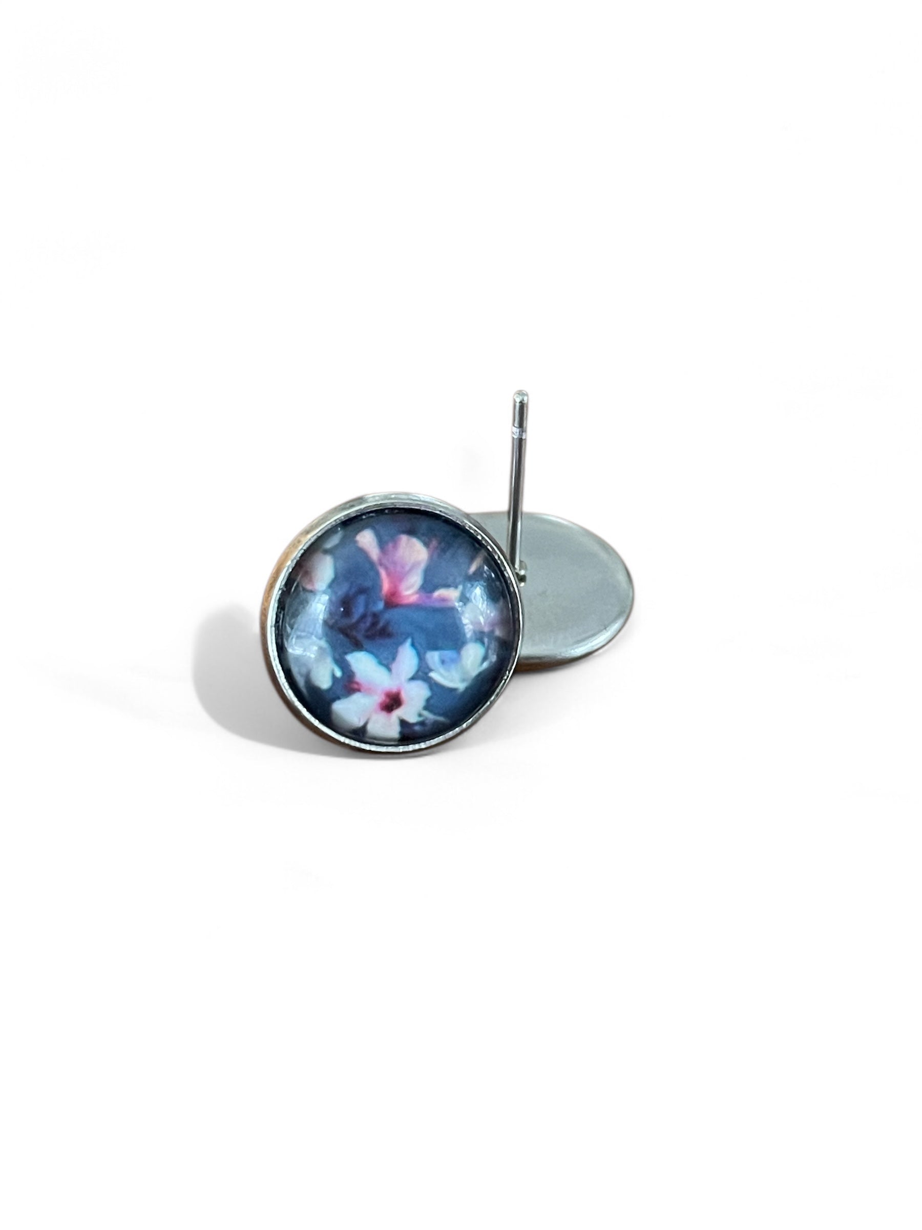 Boucles d'oreilles en acier inoxydable avec cabochons en verre de 12mm.