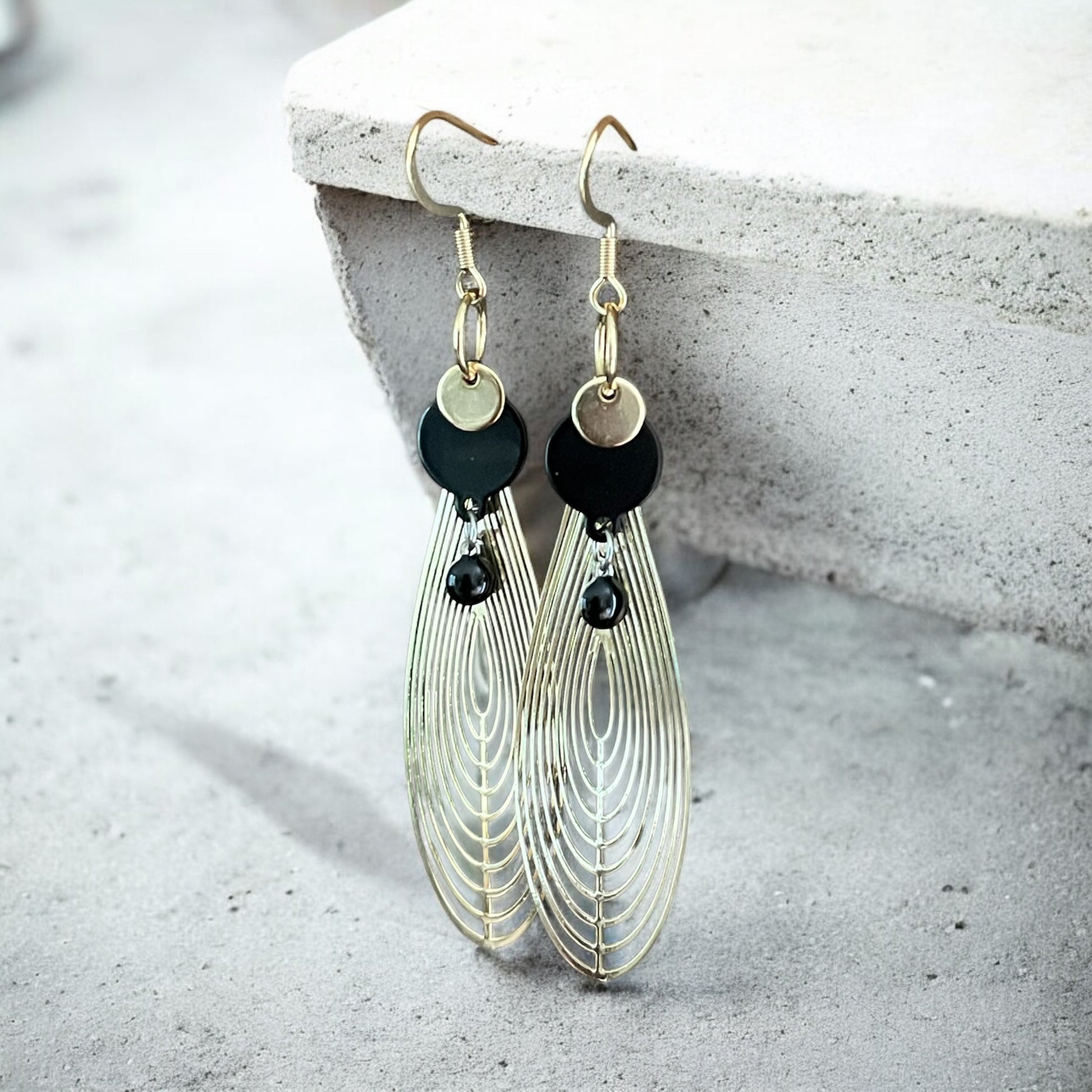 Inspirez-vous avec ces boucles d'oreilles en laiton plaqué noir, ornées de petits pendentifs en acier inoxydable. Leur attache hypoallergénique en acier inoxydable les rend très légères et confortables à porter.
