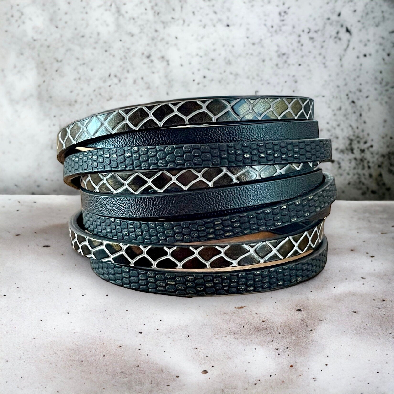 Transformez votre look avec le bracelet de cuir style wrap pour femme. Fabriqué en cuir véritable et doté d'un fermoir en acier inoxydable, ce bracelet ajoute une touche de sophistication à votre tenue. Ses 3 tours de poignet et sa chainette de rallonge pour ajustement en font un accessoire pratique et élégant à la fois.