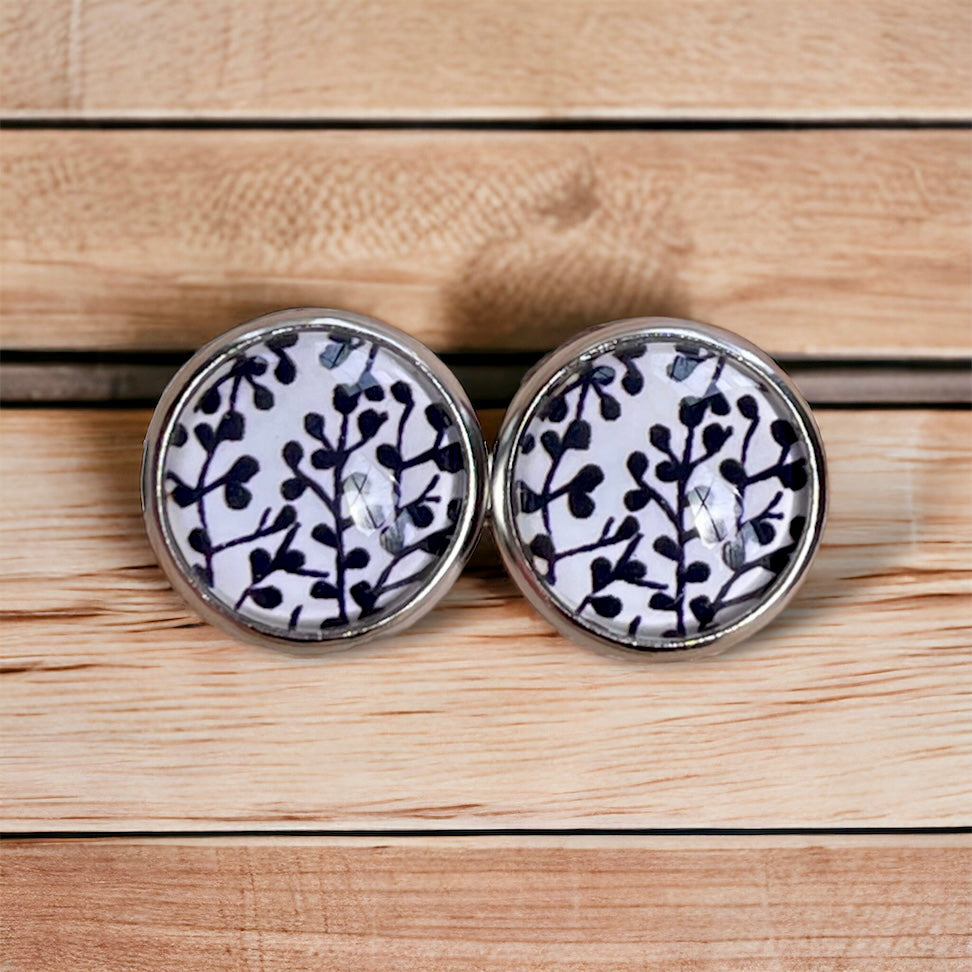 Boucles d'oreilles en acier inoxydable avec cabochons en verre de 12mm.