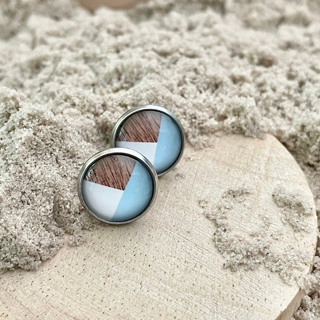 Boucles d'oreilles en acier inoxydable et cabochon de verre avec image.