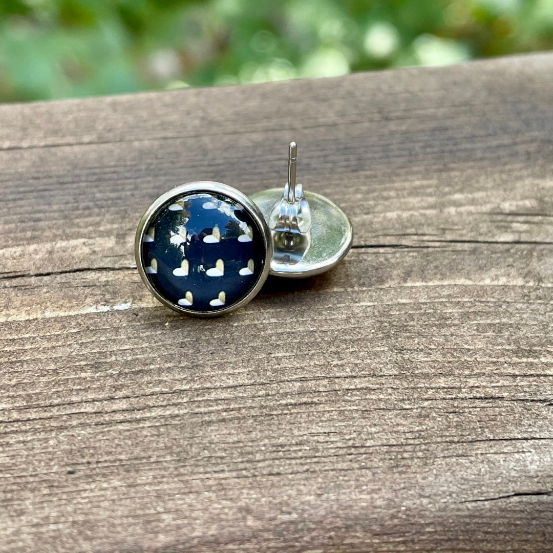 Transformez votre look avec ces clous d'oreilles en acier inoxydable et leurs cabochons en verre.