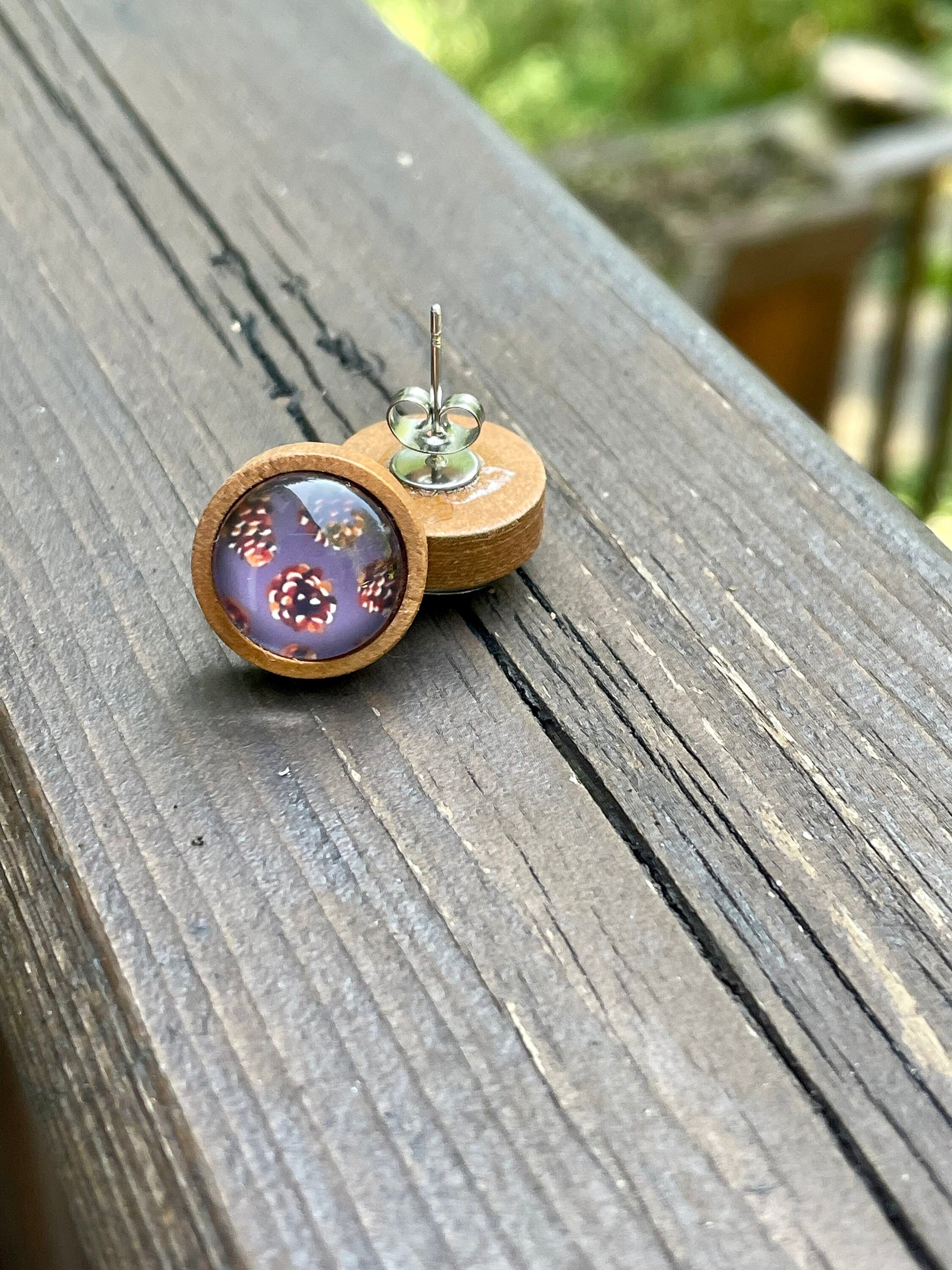 Boucles d'oreilles en acier inoxydable et cabochon de verre avec image.