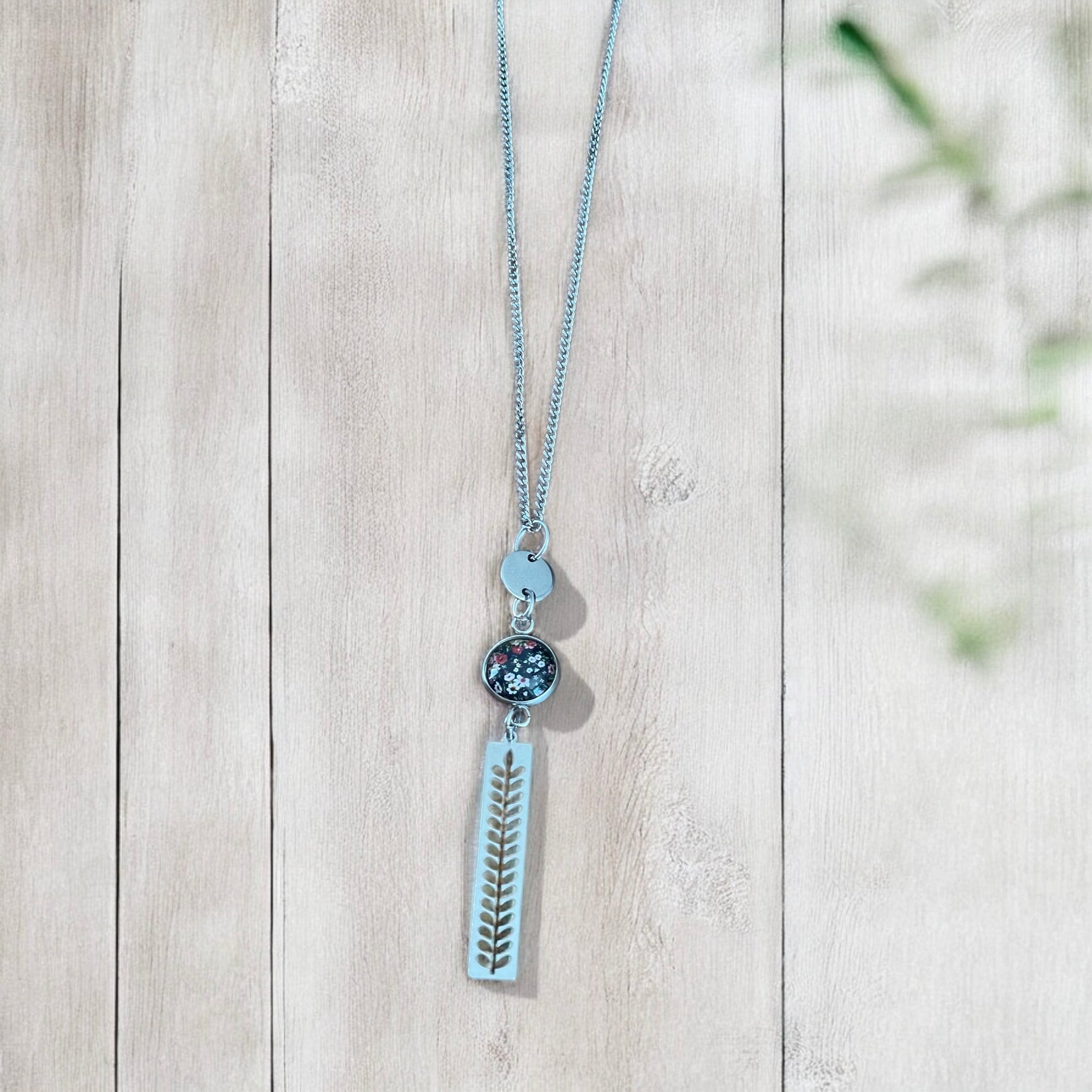 Impressionnez avec ce collier long en acier inoxydable avec pendentif en laiton. Arborez-le fièrement grâce à sa longueur de 48 cm à partir du cou. Son magnifique cabochon en verre accrochera tous les regards et ajoutera une touche d'éclat à votre style.