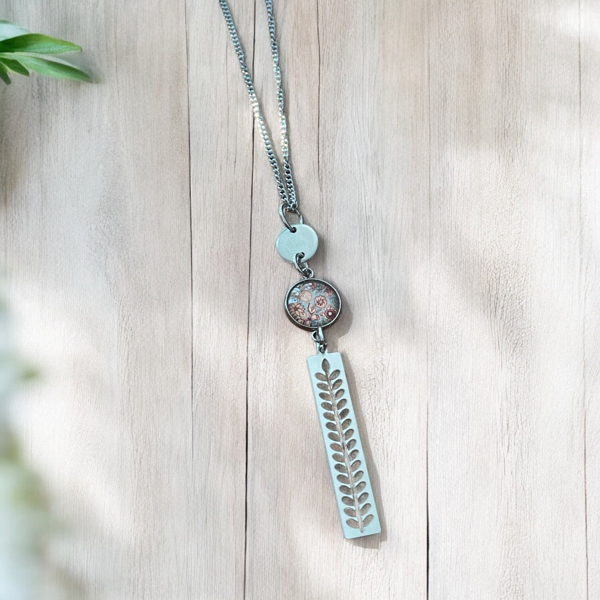 Impressionnez avec ce collier long en acier inoxydable avec pendentif en laiton. Arborez-le fièrement grâce à sa longueur de 48 cm à partir du cou. Son magnifique cabochon en verre accrochera tous les regards et ajoutera une touche d'éclat à votre style.