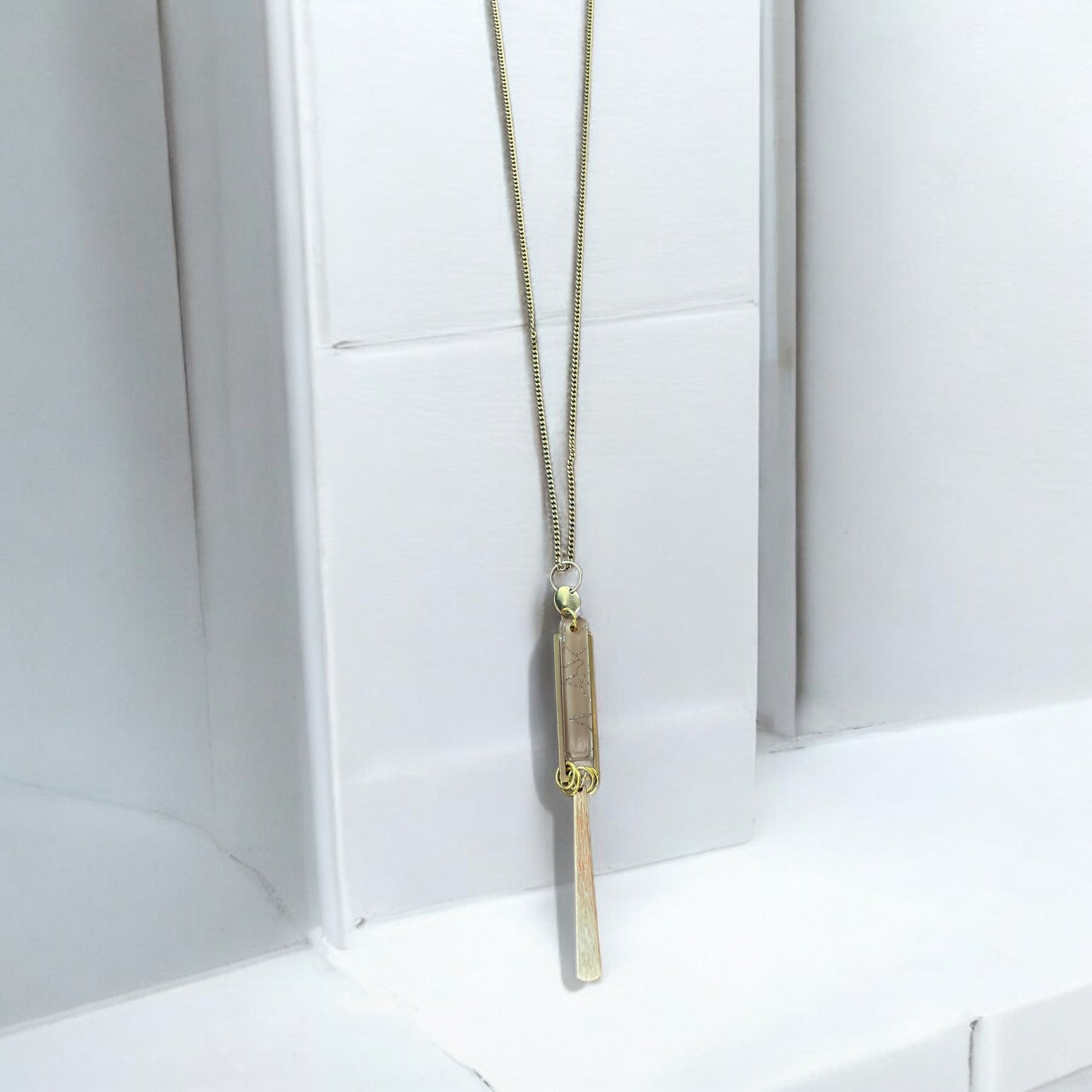 Impressionnez avec ce collier long avec pendentif en laiton, acétate et acier inoxydable. Arborez-le fièrement grâce à sa longueur de 48 cm à partir du cou. Son côté délicat et simpliste accrochera tous les regards et ajoutera une touche d'éclat à votre style.
