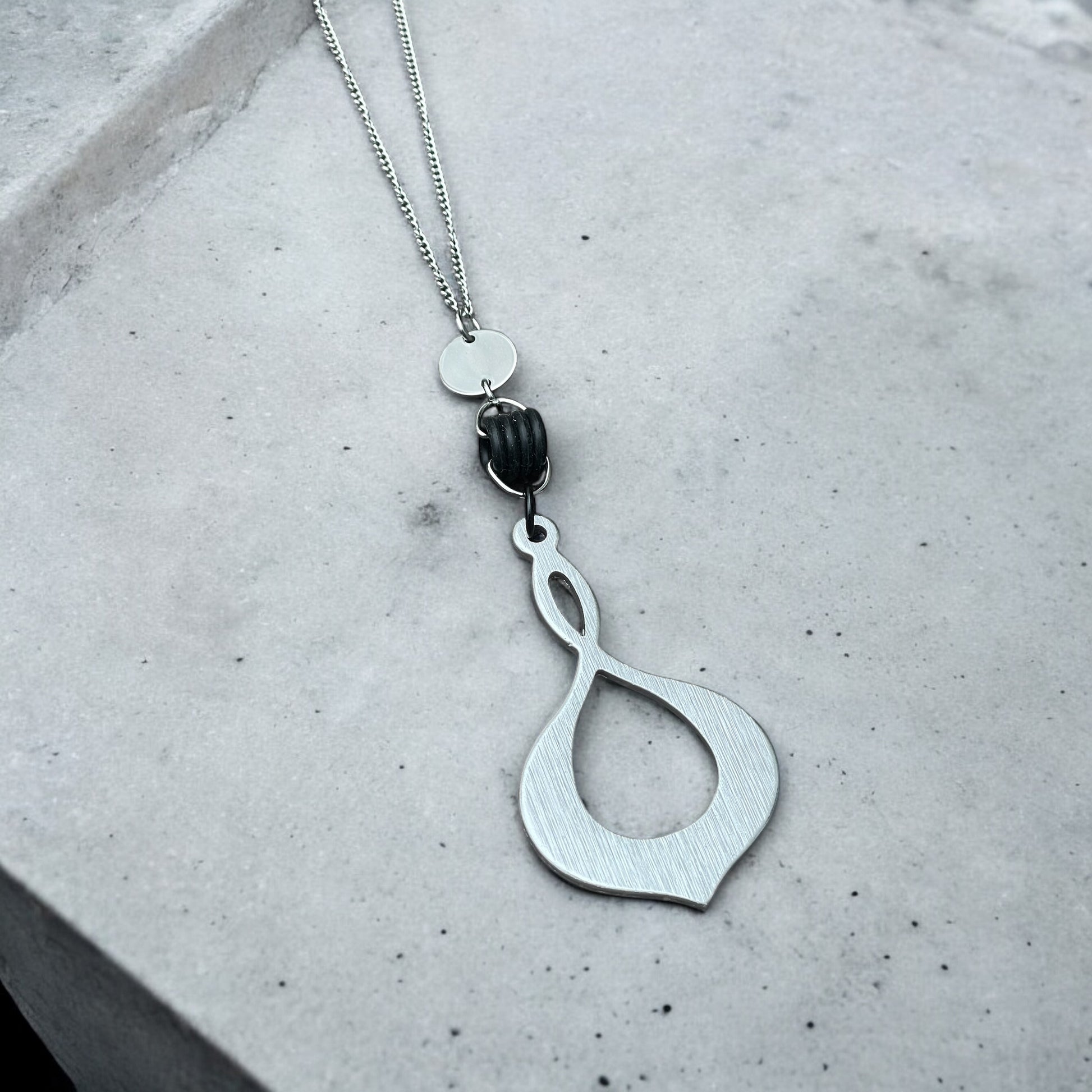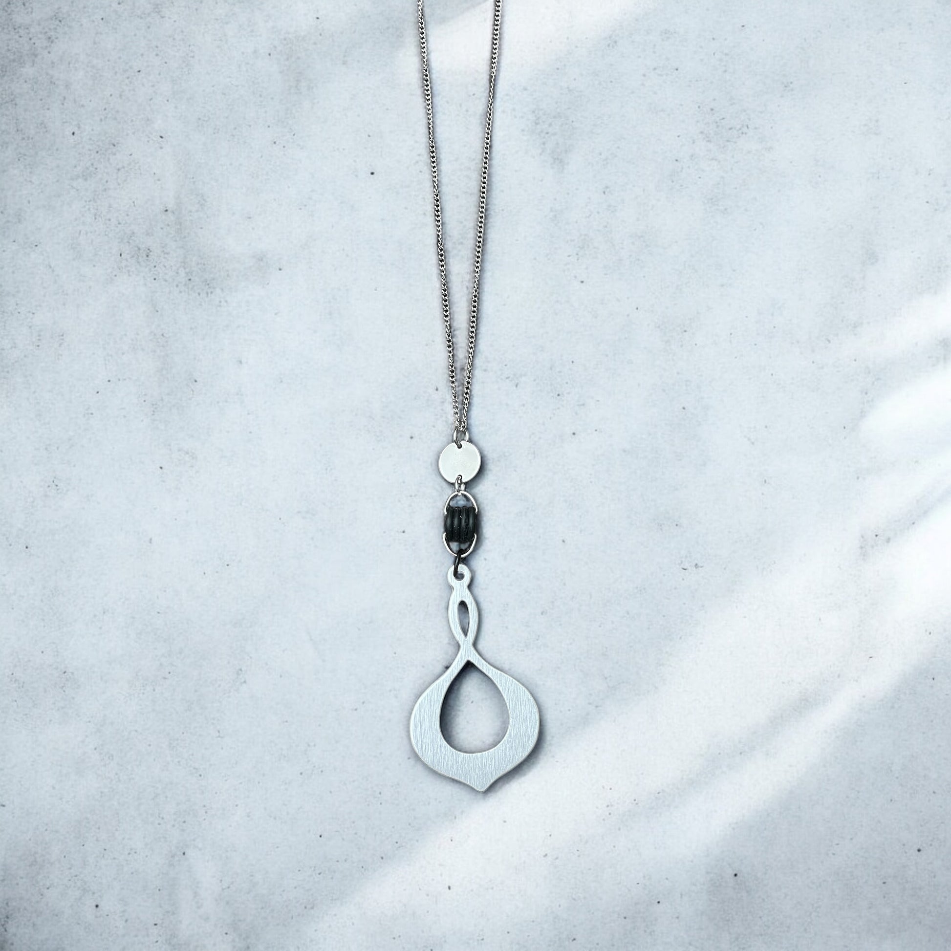 Un superbe collier long avec un connecteur en inoxydable et un pendentif en laiton.