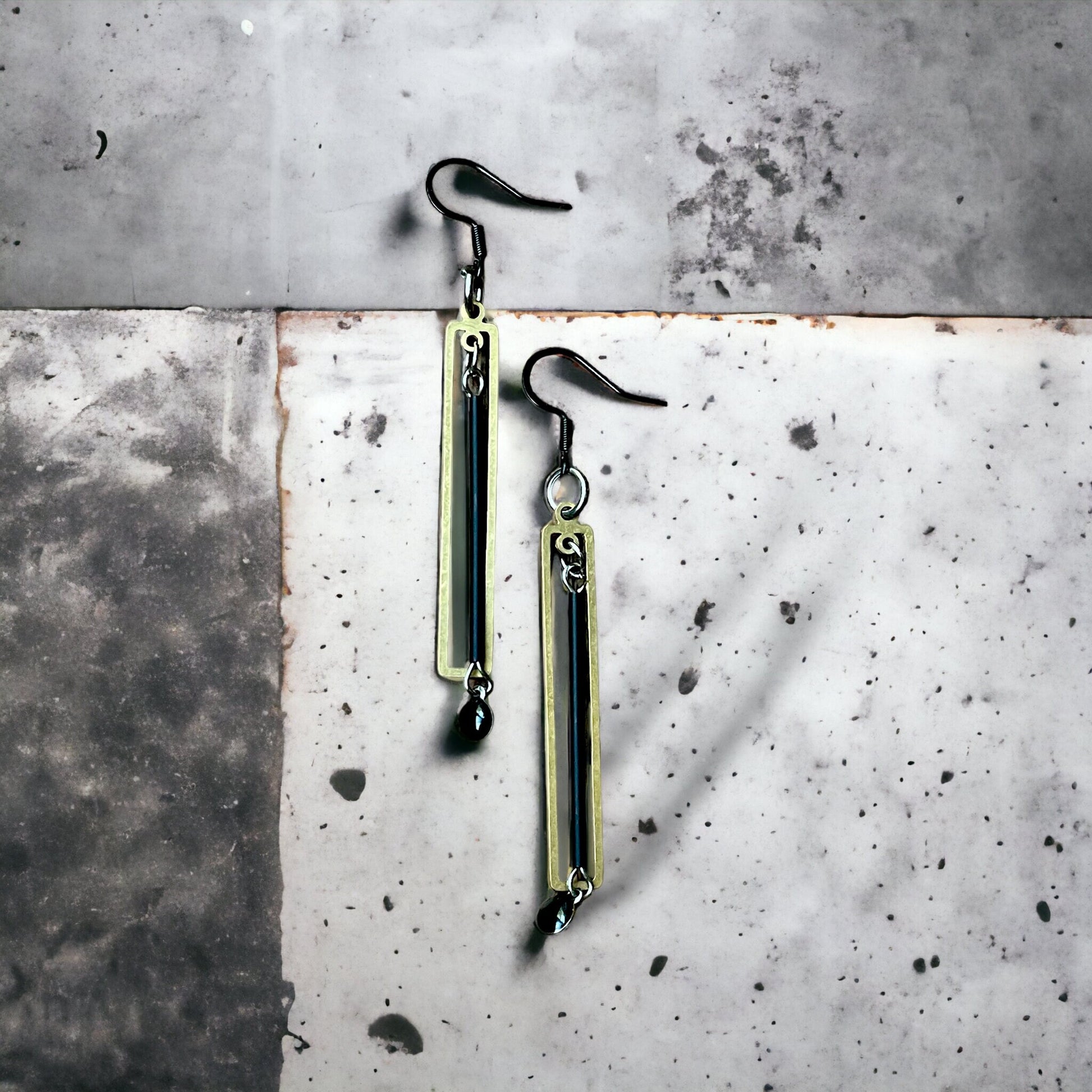 Délicates boucles d’oreilles en acier inoxydable et laiton. Légères et hypoallergéniques avec une attache en acier inoxydable.