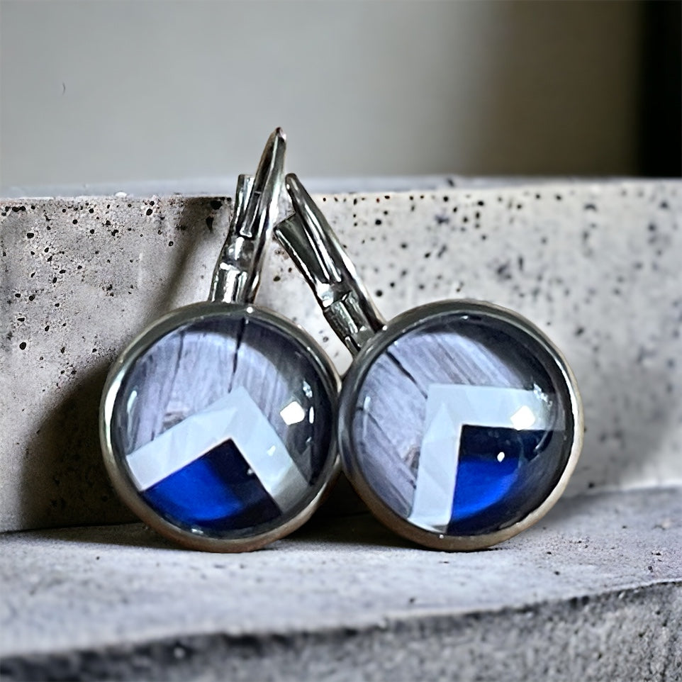 Boucles d'oreilles en acier inoxydable avec cabochons en verre.