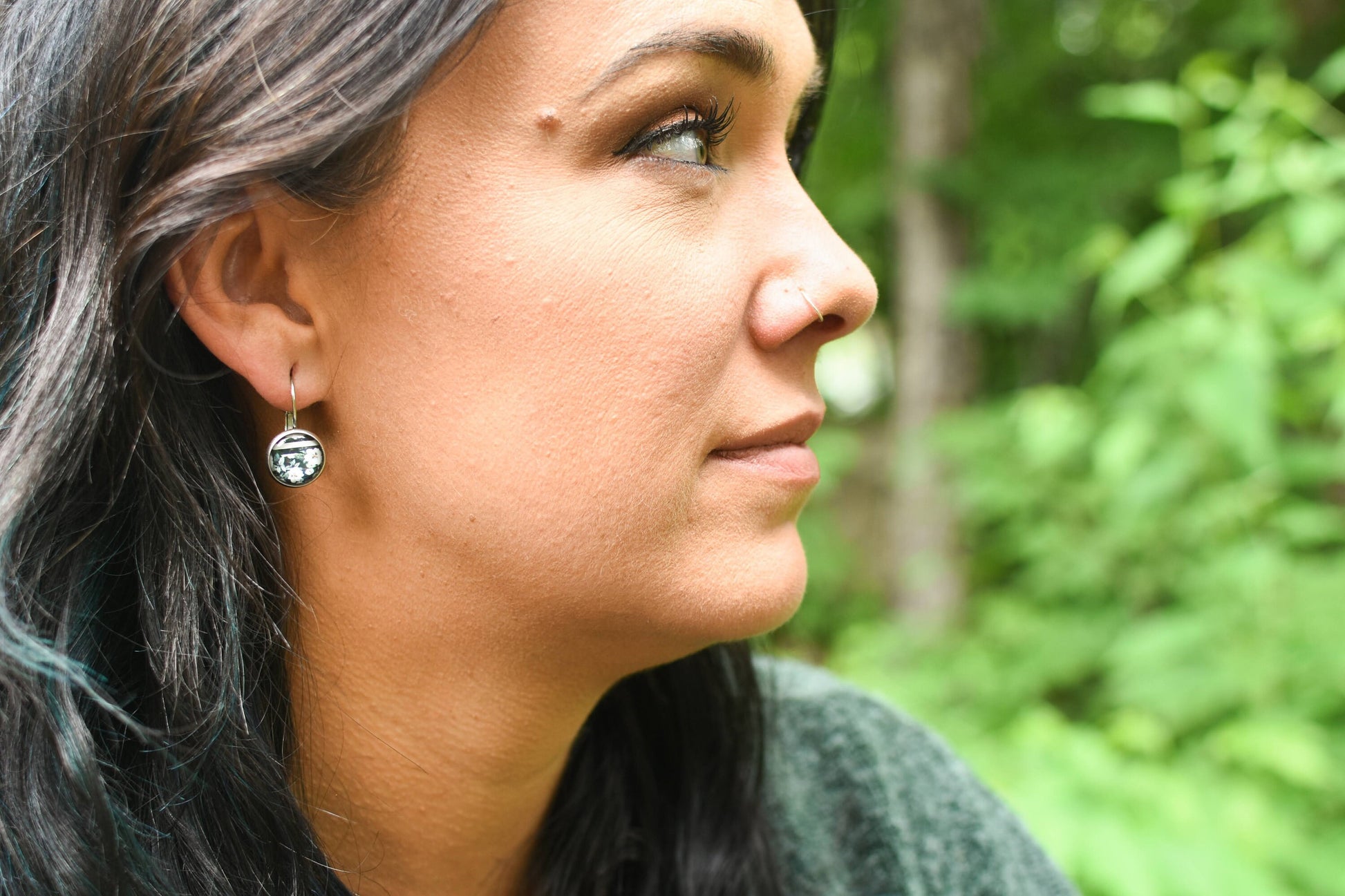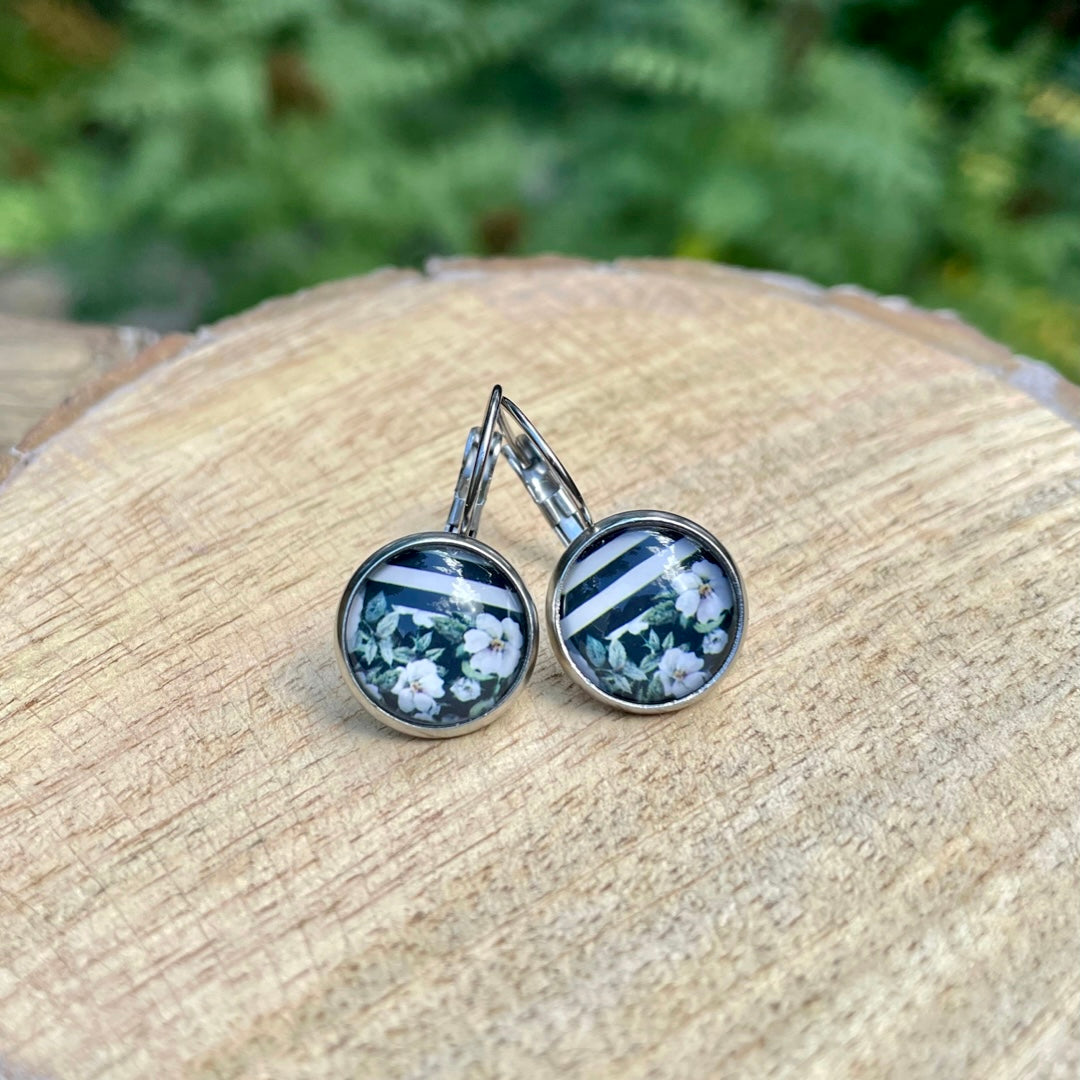 Boucles d'oreilles en acier inoxydable et cabochon de verre avec image.