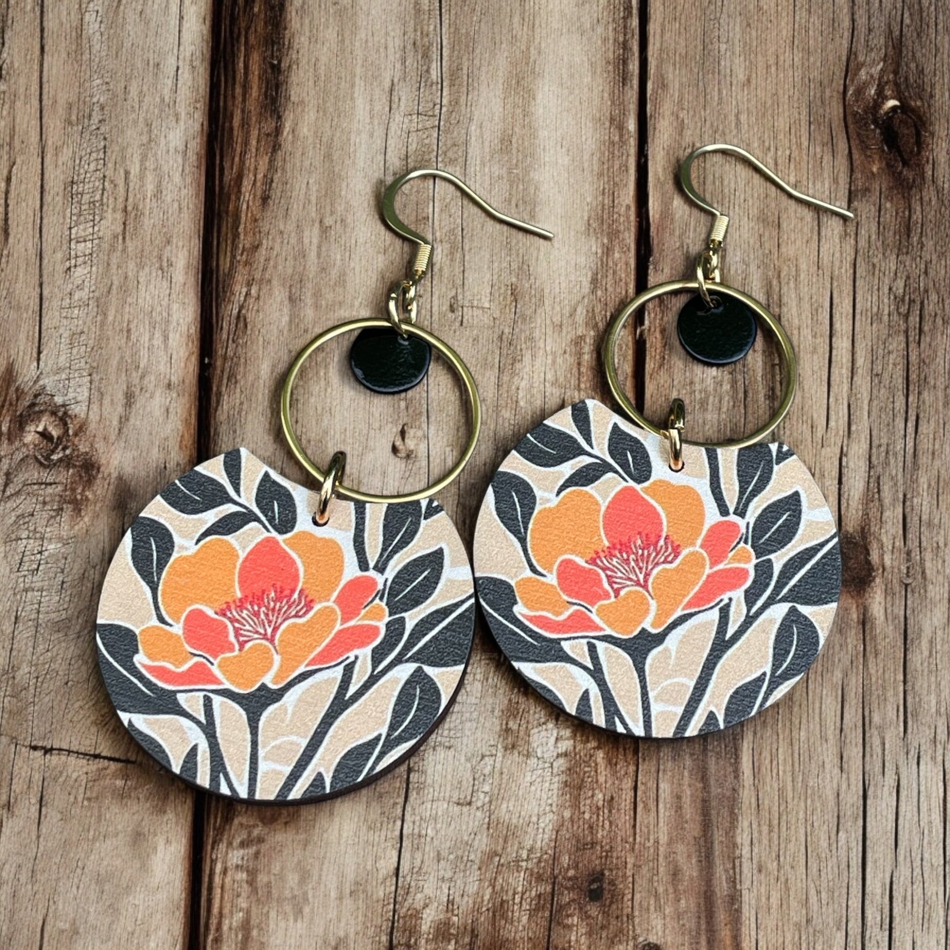Assurez-vous d’être élégantes avec ces boucles d’oreilles aux pendentifs en bois imprimé de 3 cm de large et 7.5 cm de long.
