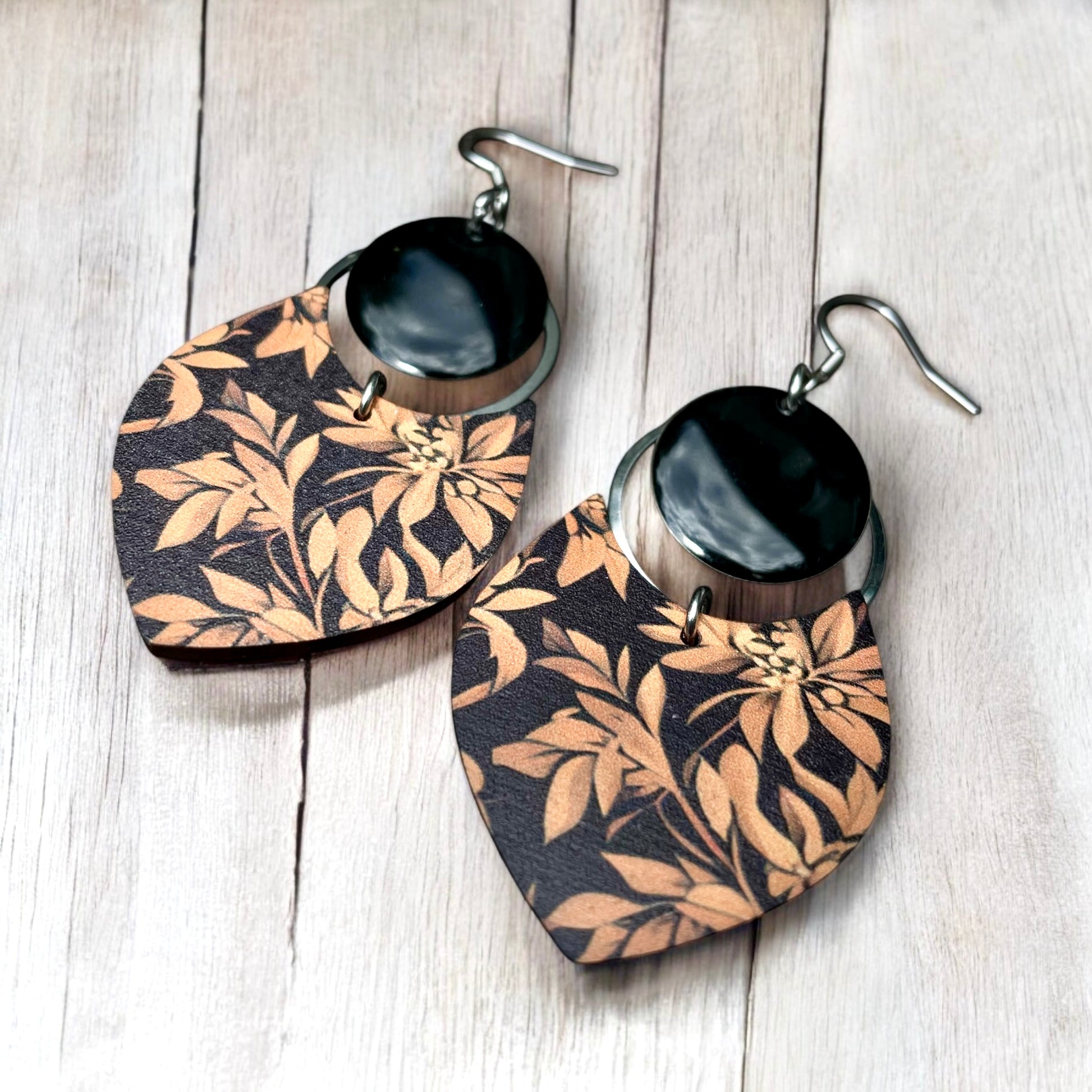 Ravivez votre look avec ces boucles d’oreilles en acier inoxydable, sequins émaillés et bois.
