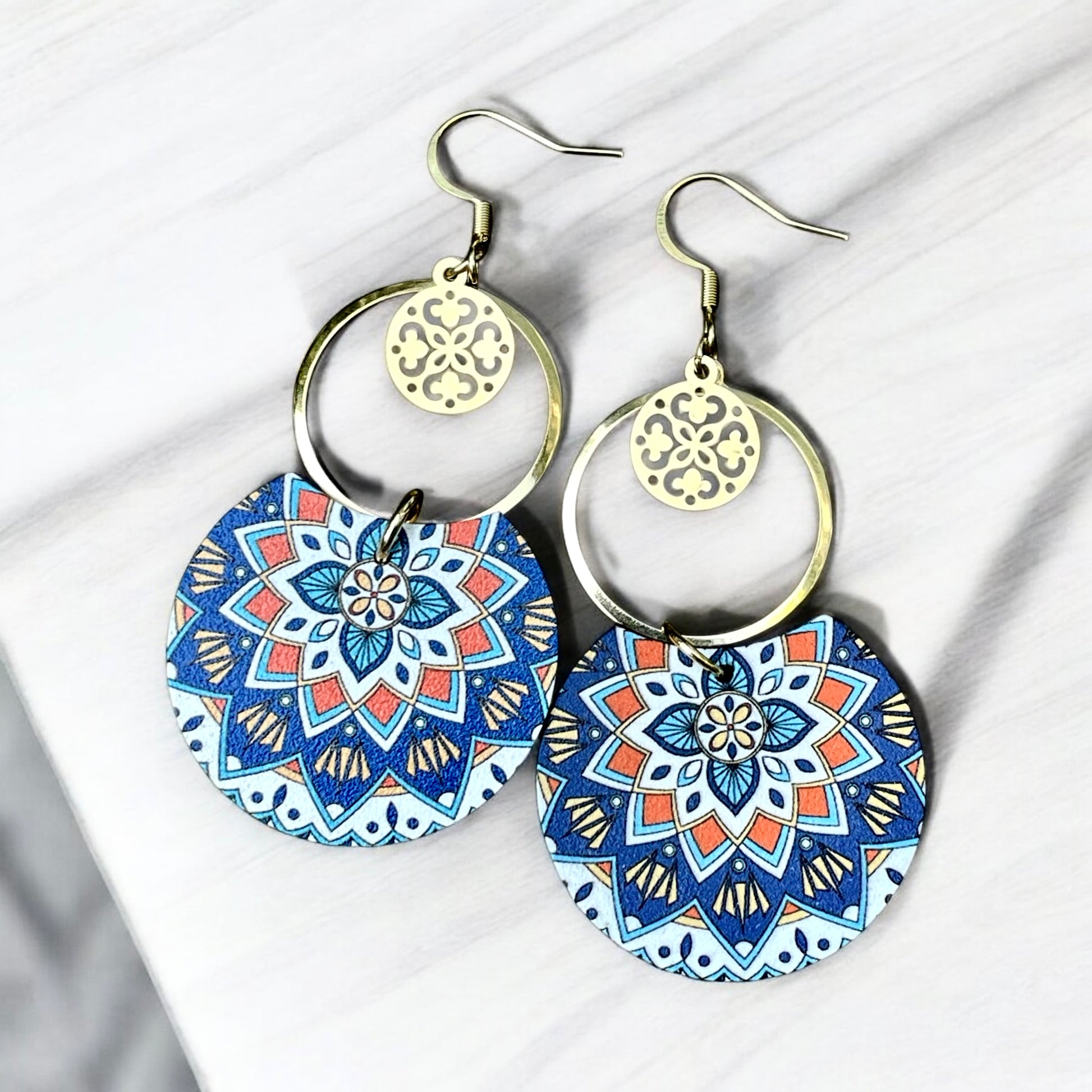 Assurez-vous d’être élégantes avec ces boucles d’oreilles aux pendentifs en bois imprimé de 3 cm de large et 7.5 cm de long.