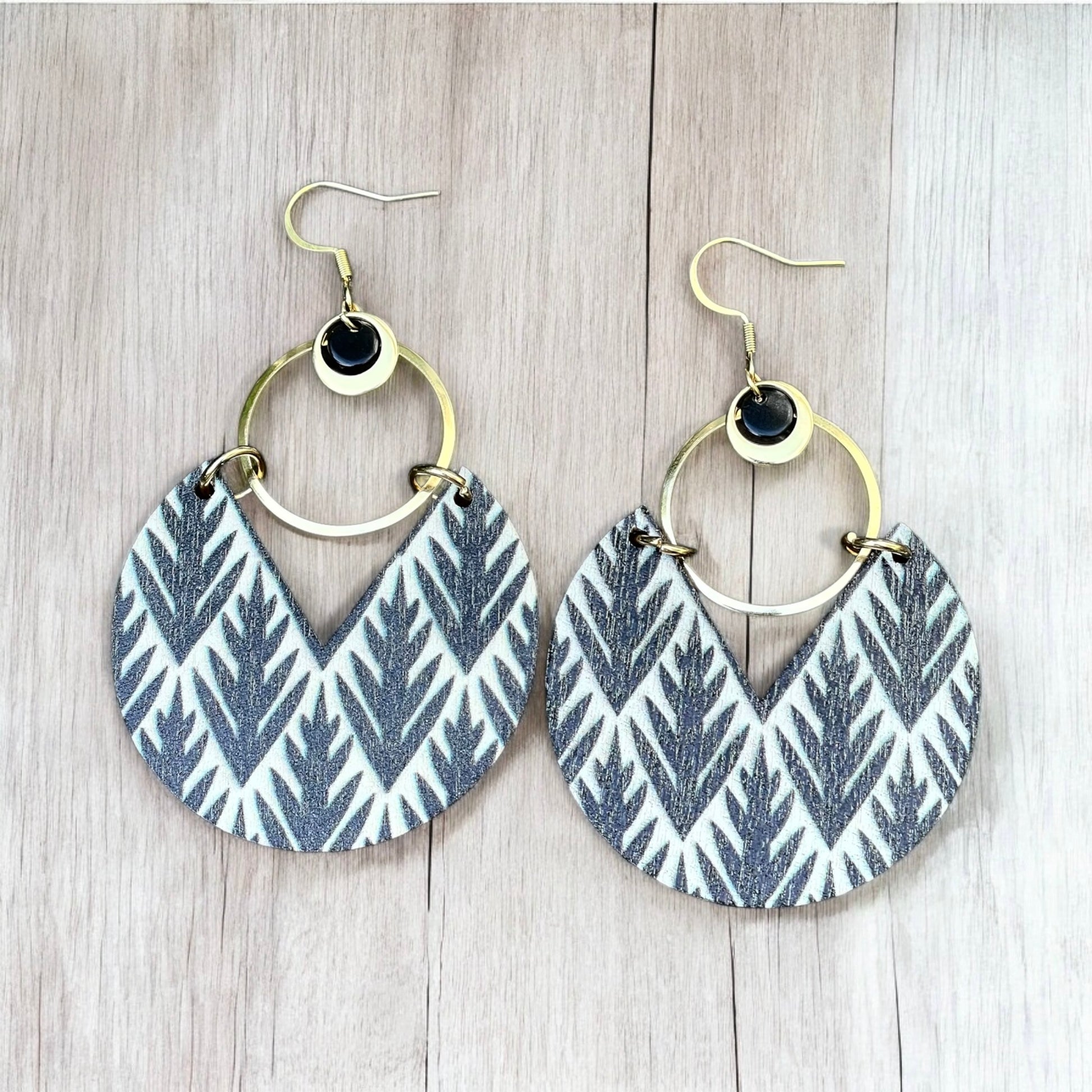 Assurez-vous d’être élégantes avec ces boucles d’oreilles aux pendentifs en bois imprimé de 4.5 cm de large et 9 cm de long.