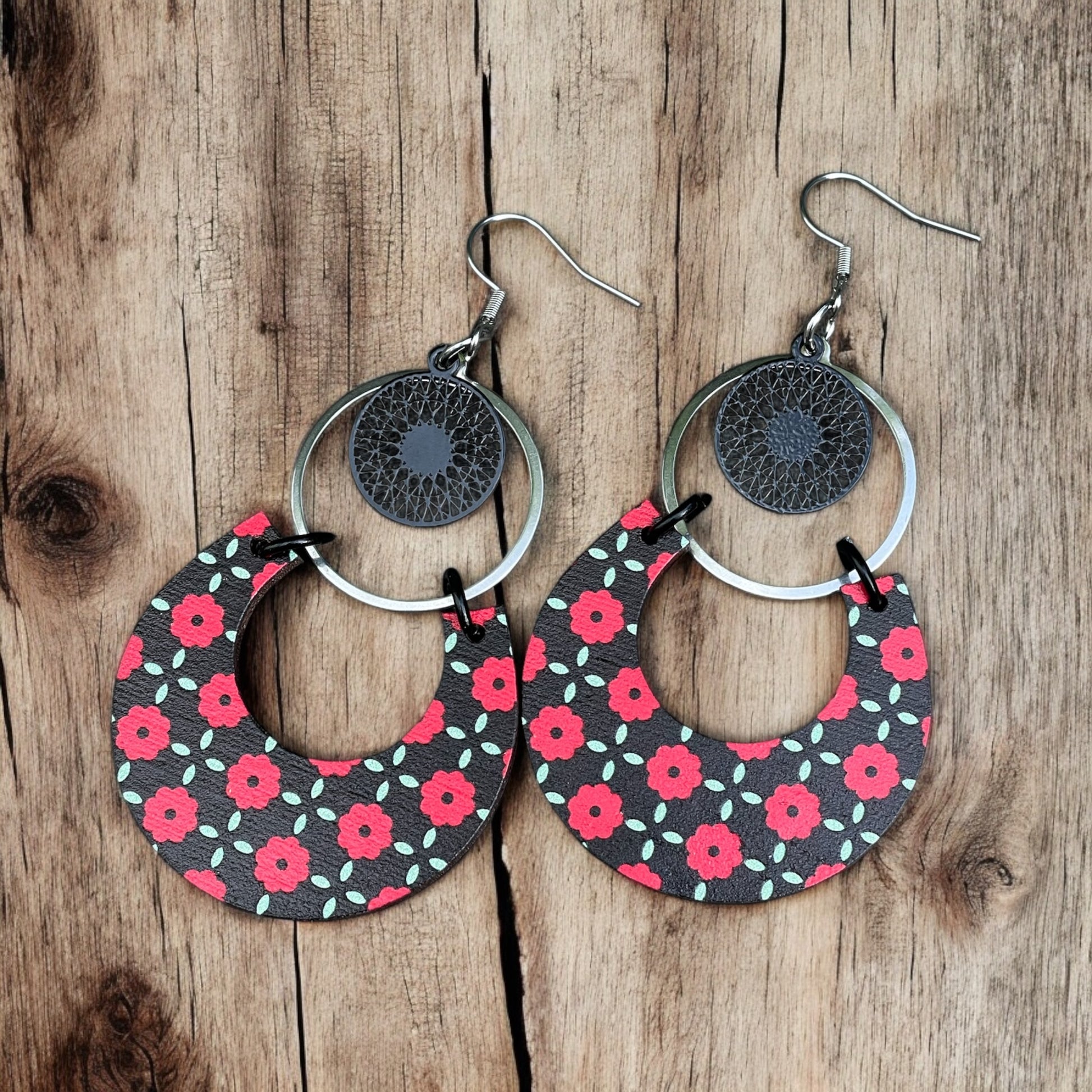 Assurez-vous d’être élégantes avec ces boucles d’oreilles aux pendentifs en bois imprimé de 3.5 cm de large et 7.5 cm de long.
