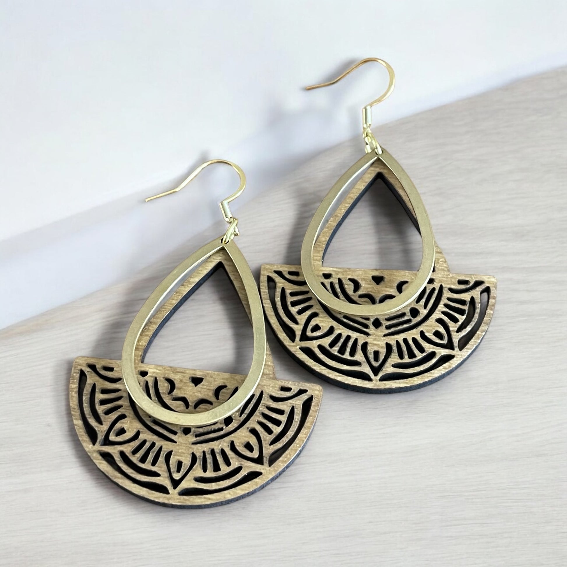 Faites sensation avec ces boucles d'oreilles uniques en bois rehaussées de pendentifs et crochets en acier inoxydable.