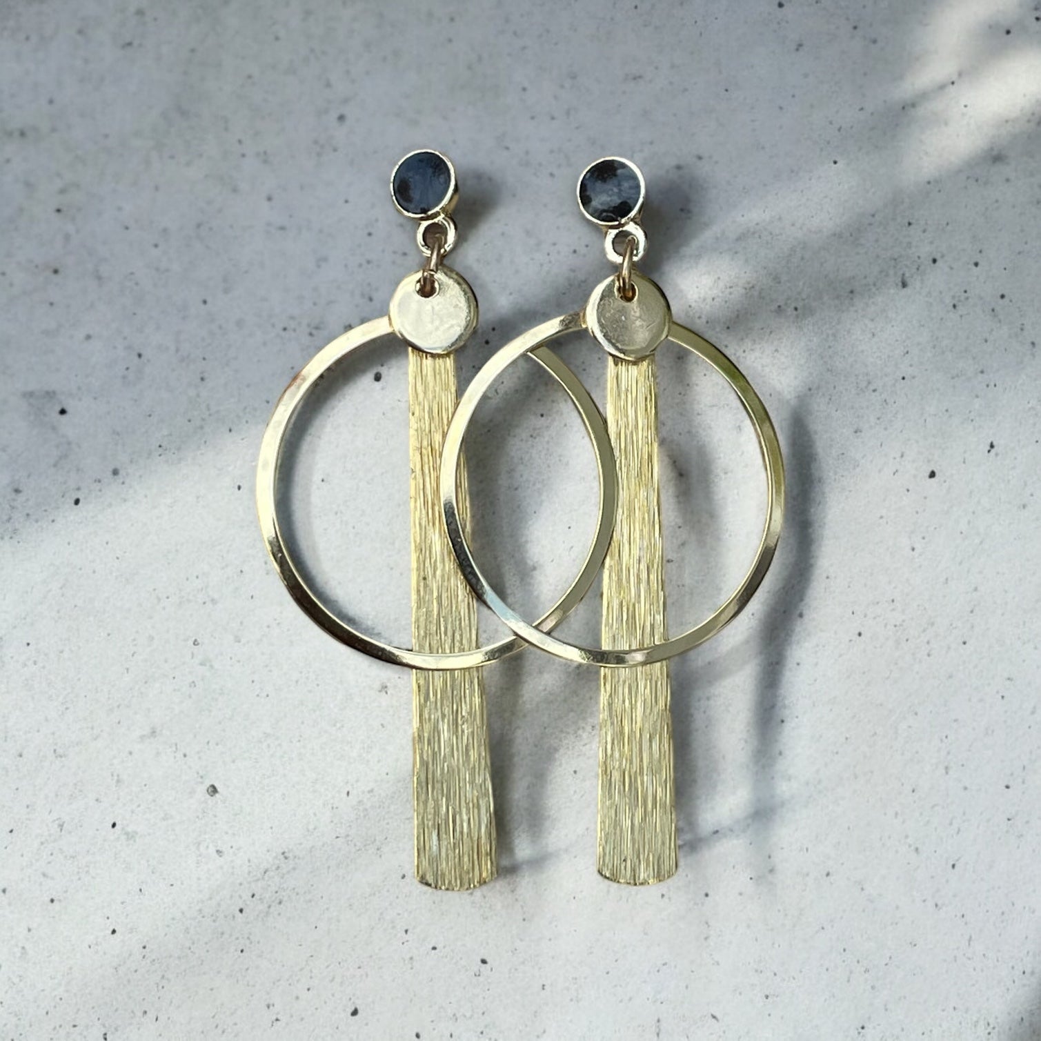 Boucles d'oreilles modernes et élégantes en inox et laiton avec attaches hypoallergéniques en acier inoxydable.