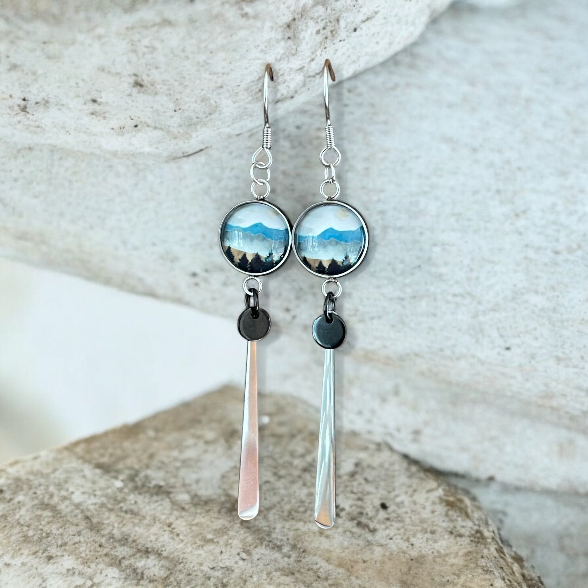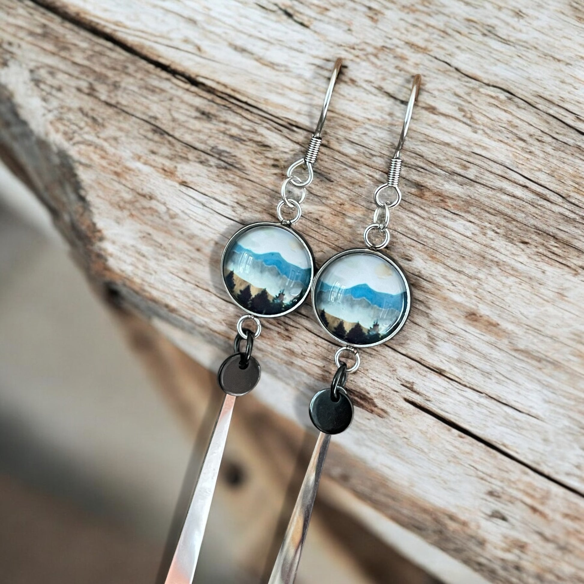 Découvrez ces boucles d'oreilles en acier inoxydable avec un cabochon de verre.
