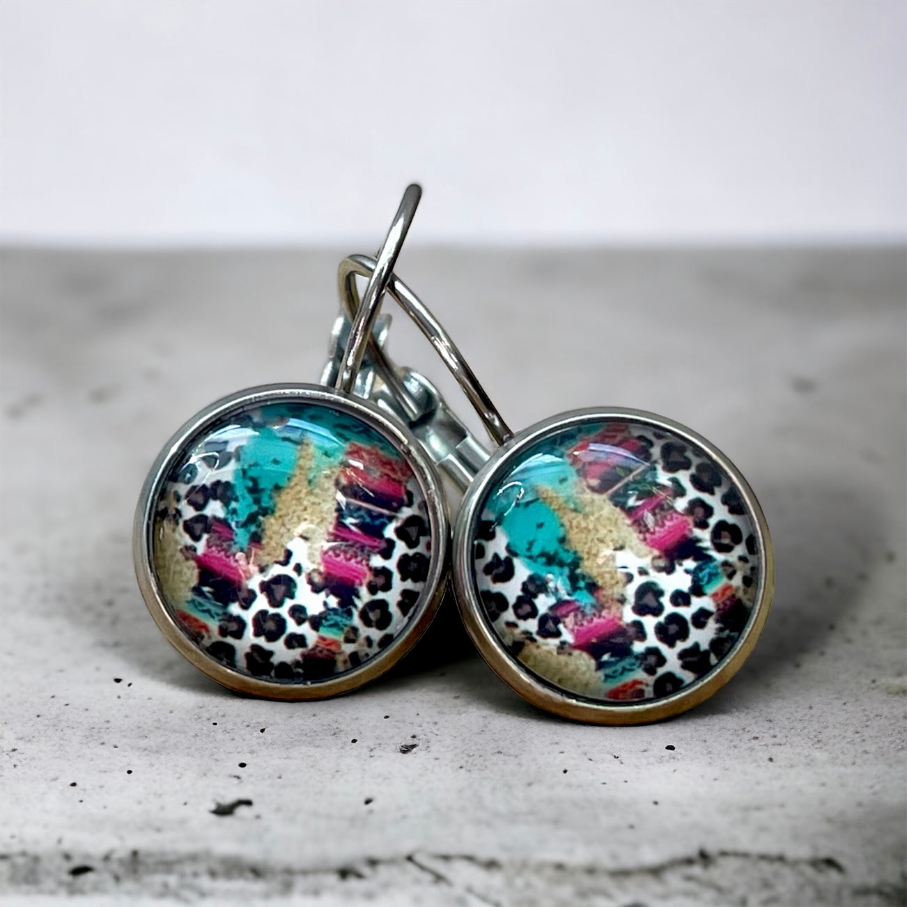 Boucles d'oreilles en acier inoxydable avec cabochons en verre.